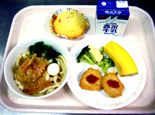 - あんかけうどん わかめときゅうりの中華和え りんご